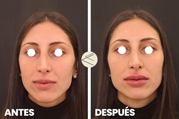 Antes y después del tratamiento de aumento de labios con ácido hialurónico en Sevilla